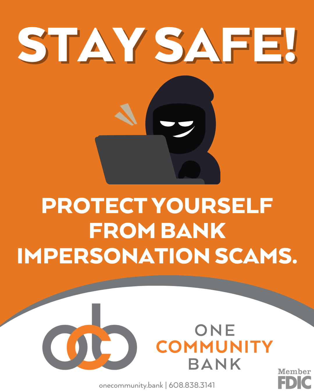If in doubt, contact One Community Bank by calling (608) 838-3141 or stop into any ONE of our locations.